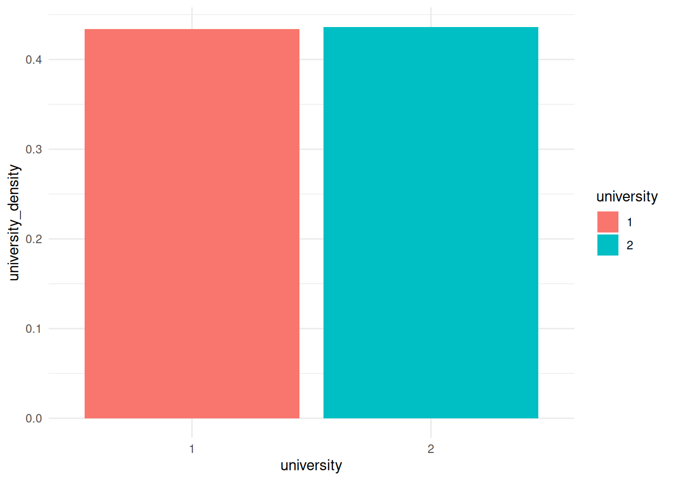 geom_col(aes(x = university, y = university_density, fill = university)) +