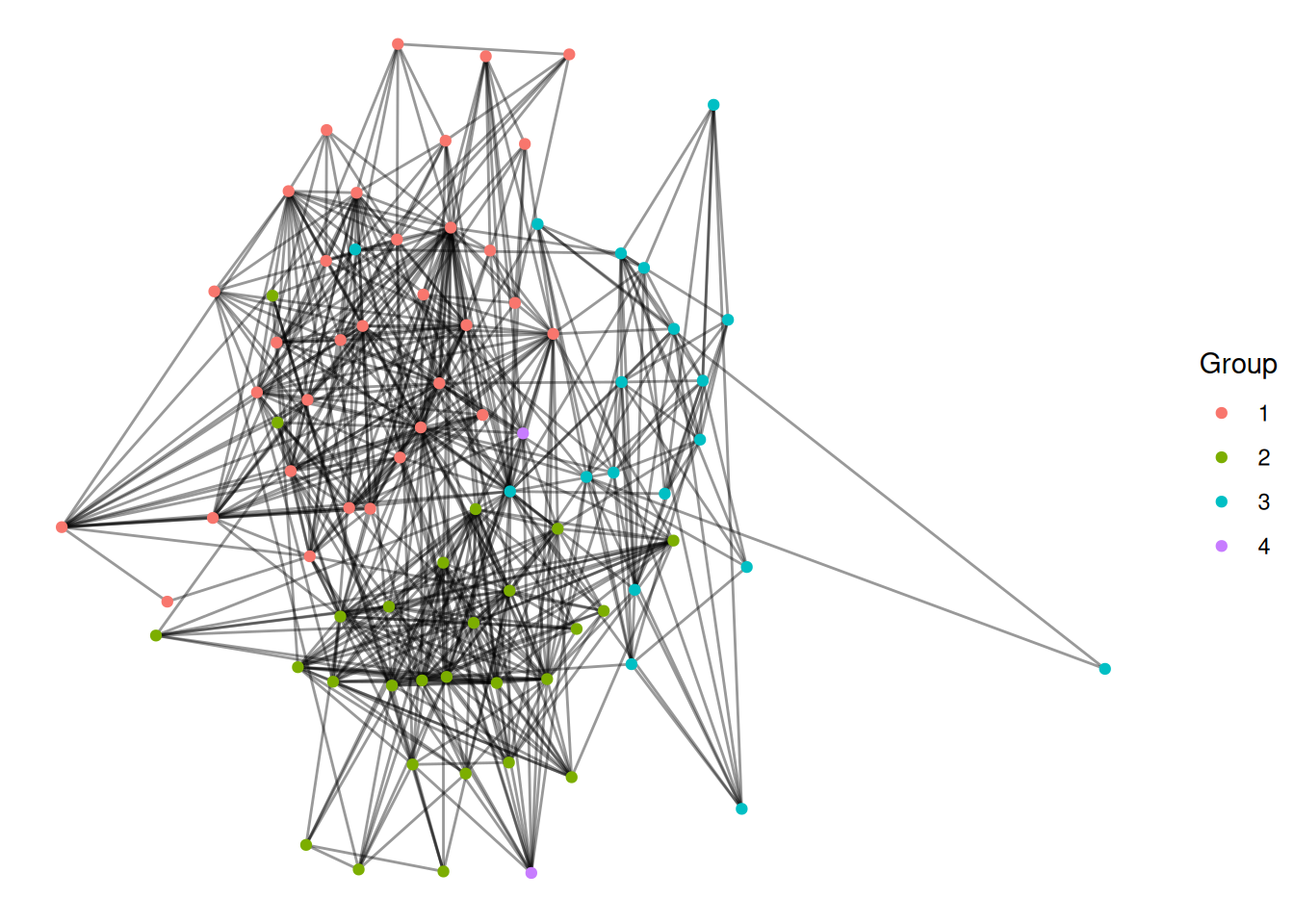 In this lesson, we will focus on understanding different approaches to identifying groups in networks. Human networks are “groupy”—whether through triadic closure or foci of activity, and so large enough networks will typically be composed of different groups. If you think about your own friendship network, it’s likely that you could group many of them (e.g., high school friends, soccer friends, and Comm friends). Network structure can be used to identify different groups.